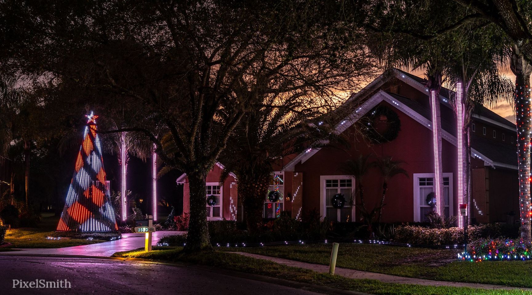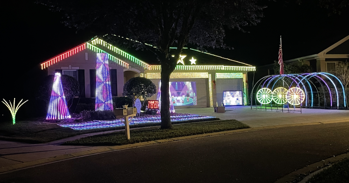 This is a pixel light display synced to music. Pull your car right into the front of the house and enjoy. New songs added after Christmas. Light show runs until January.