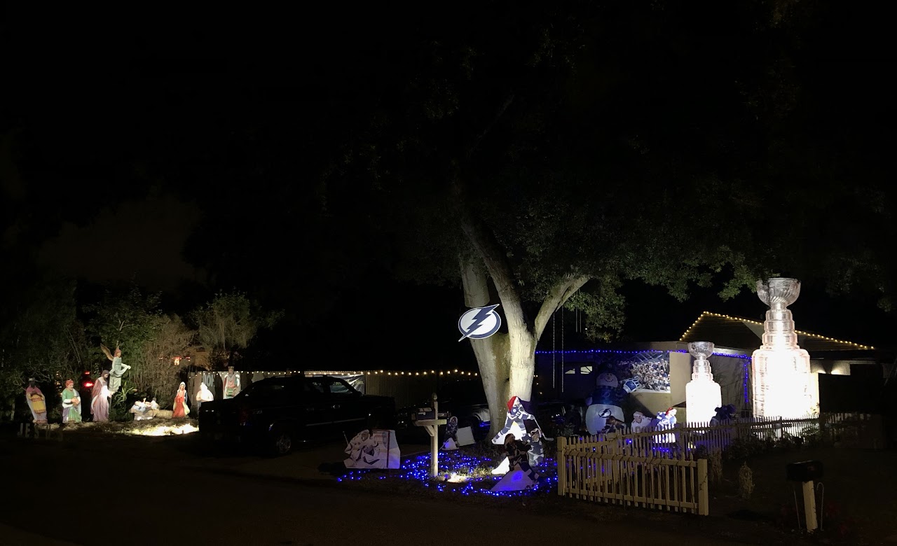 GO BOLTS! Who doesn’t love a good 16ft Stanley Cup? An excellent set up with a life size nativity, a 16ft Stanley cup, an 8ft Stanley Cup, and other Bolts memorabilia. This is sure to be a winner with any Tampa Bay Lightning fan in the car with you.