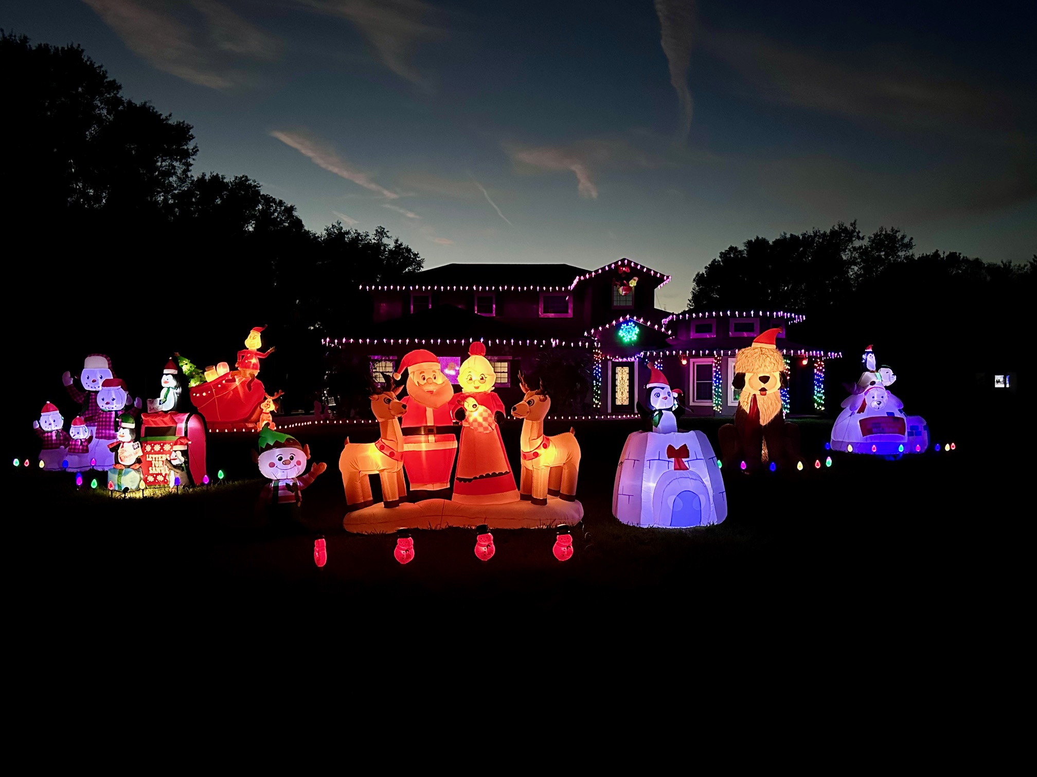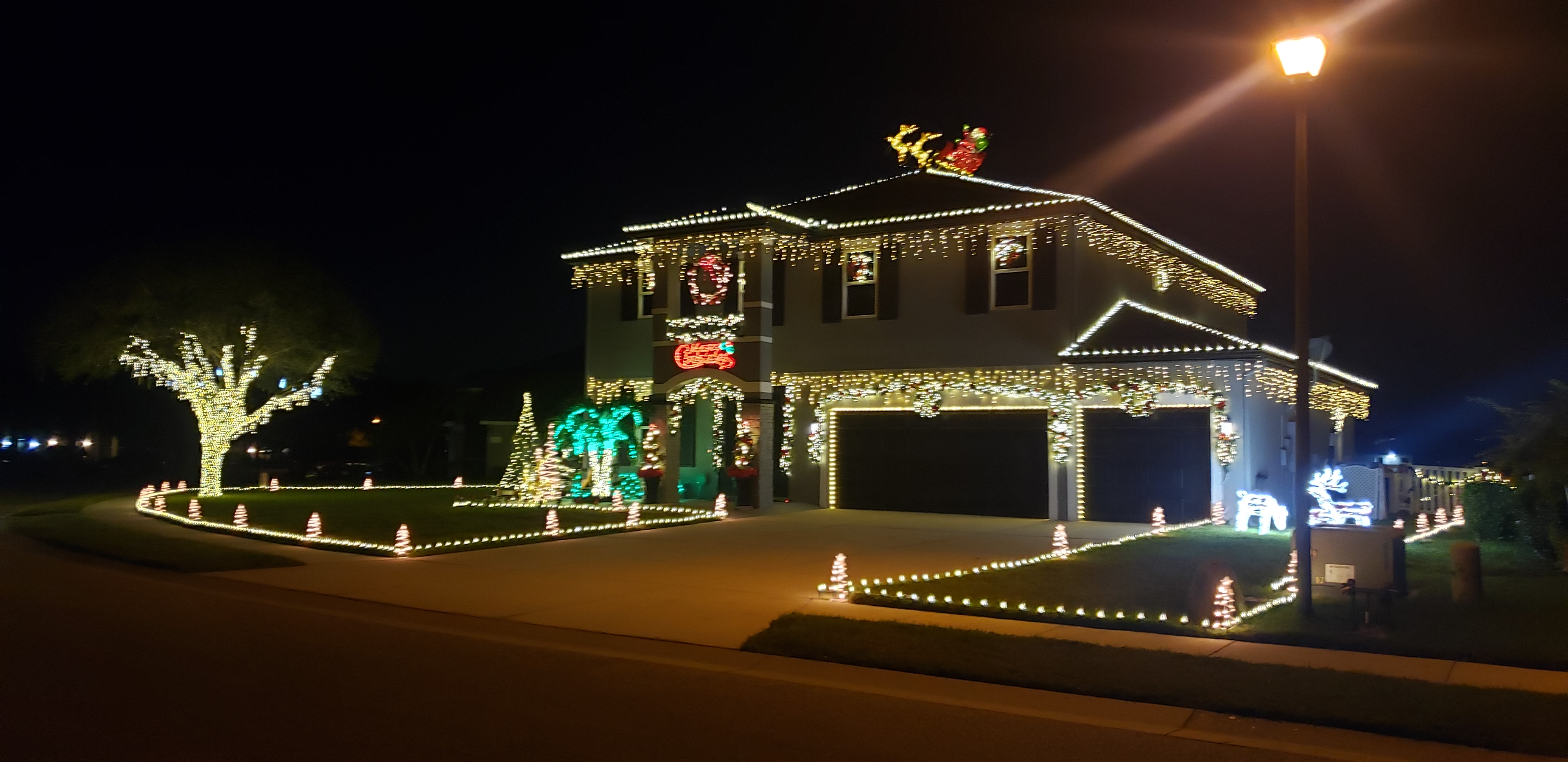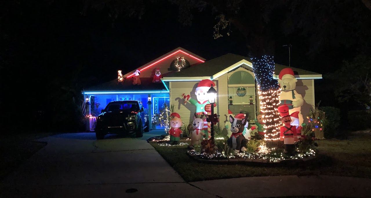 Happy Holidays from Barbaza’s of Barrington Ridge, Bradenton. Takes about 2 week transformation of 10K+ lights between my wife and I. Lights start 5pm-11pm on the nose. Displays are visible during the day time as well.